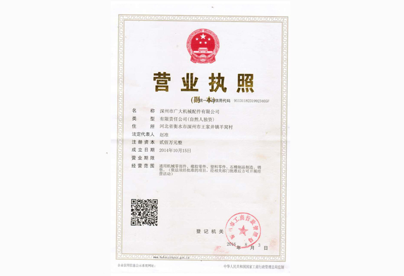 深州市廣大機(jī)械配件有限公司始建于2000年,是專業(yè)生產(chǎn)橡膠、塑料用品、沖壓件的民營(yíng)企業(yè)。我公司地處古城深州,石德鐵路、京九鐵路、石黃高速、大廣高速在此交匯,交通十分便利,地理優(yōu)勢(shì)優(yōu)越。工廠占地面積3000平米,建筑面積1500平米,現(xiàn)有職工50名,專業(yè)技術(shù)人員5名,固定資產(chǎn)1200萬... 詳細(xì)>>